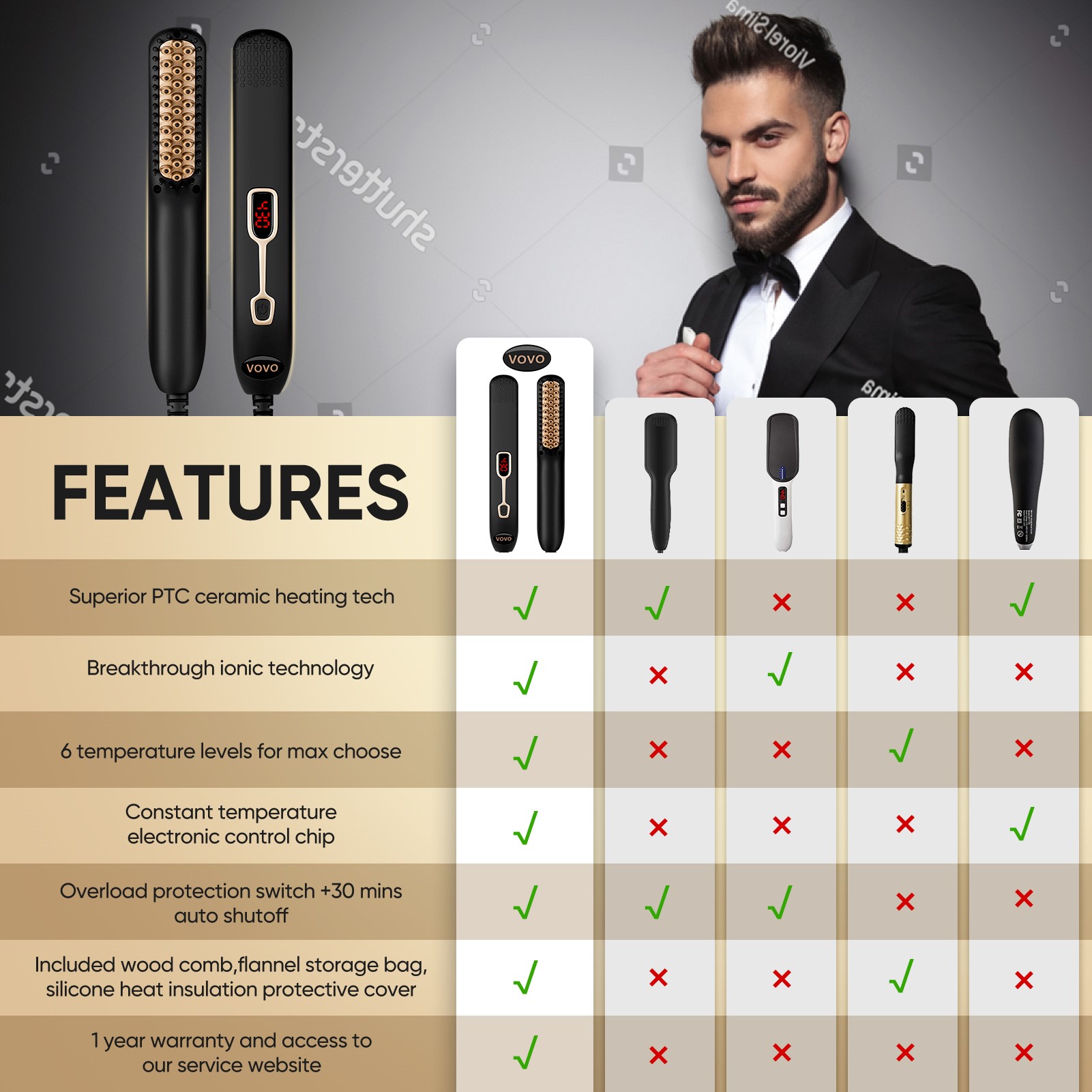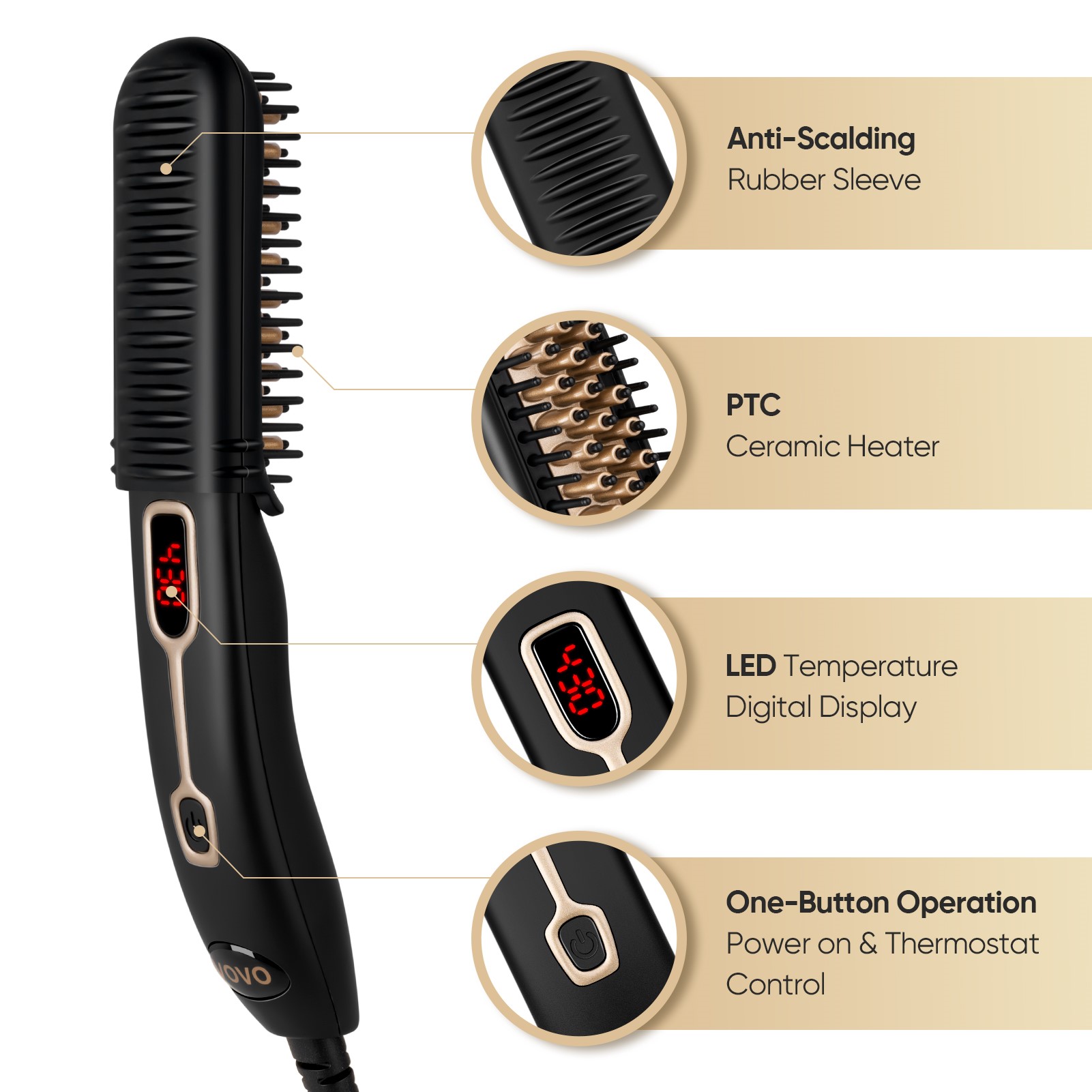 • 最佳礼物选择-我们的胡须拉直梳子以紧凑的形式满足了人体工程学的舒适手柄设计。110V-240V的国际电压使其成为居家旅行胡须的理想配件。非常适合作为送给父亲,男友或丈夫的节日礼物
